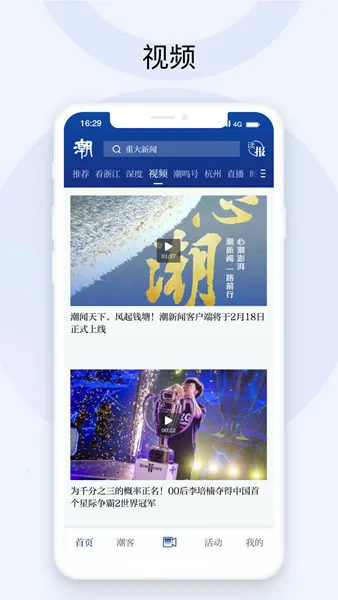潮新闻是浙江日报报业集团打造的一款新闻客户端软件。它立足浙江,联动长三角,辐射全国,以短视频传播为特色,专注事件报道与热点引导。