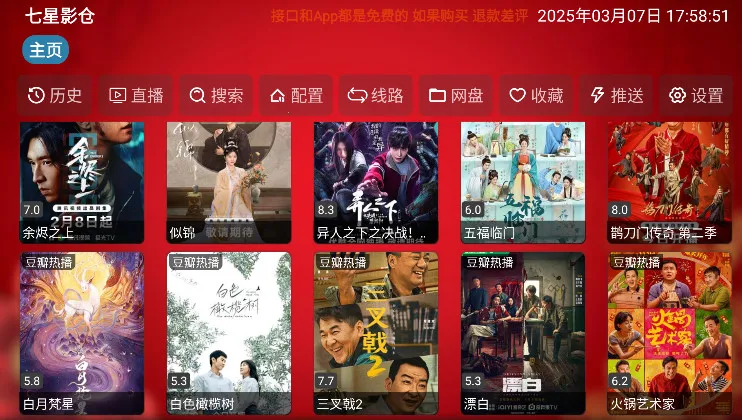 七星影仓官方最新版是一款专为智能电视及大屏设备设计的影视娱乐应用,整合海量影视资源,无广告干扰,更新迅速,支持多屏互动、离线缓存,适配多系统,提供高清流畅观影体验。