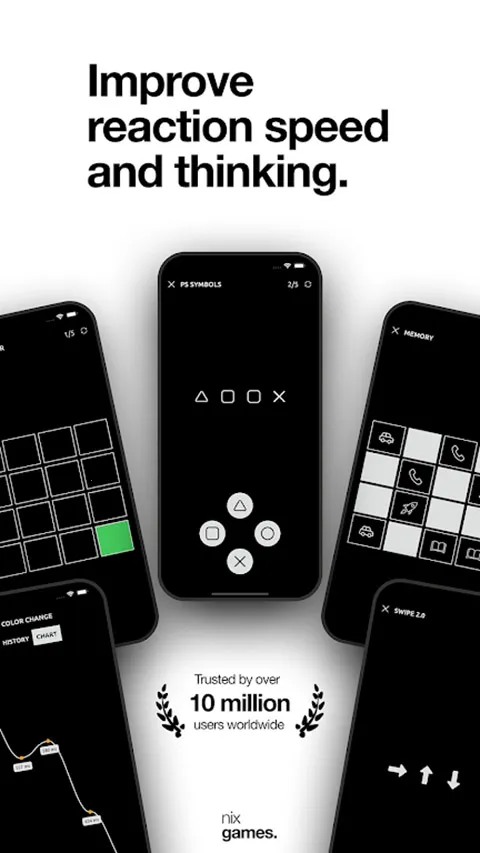 其内置55种多样挑战,针对不同反应和逻辑技能。比如舒尔特表练习、数学挑战等多种训练内容。游戏支持个人练习,也有双人模式可与朋友竞争,一台设备就能完成测试,每次游戏还会记录反应数据,方便查看是否有提升。
