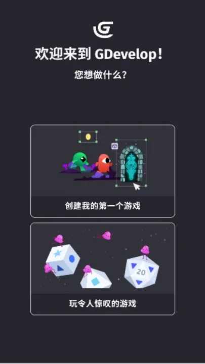 1、启动GDevelop软件,通过邮箱完成注册或使用第三方平台关联登录,完成身份验证后进入主界面。