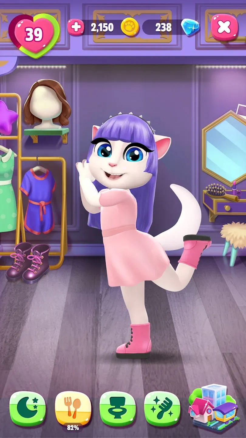 在这款游戏中,你能为安吉拉收集海量服装与发饰,带她畅游多样场景,见证其快乐成长。安吉拉有全新游戏,喜欢唱歌跳舞玩耍,新家设施齐全。可在舞蹈房练舞步,去甜品店买糖果蛋糕,还能尝试烘焙。房子里有各种迷你游戏,能锻炼技能。时尚房间里衣柜满是服装配饰,化妆台可玩化妆游戏,发廊能尝试新发型。你要留意她的需求,陪她休息放松,进行飞机旅行找新物品,好好照顾这位挚友。