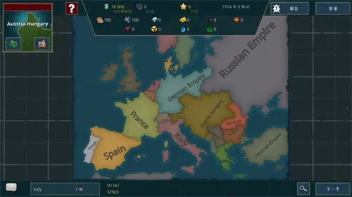 进入游戏后,先选新游戏,再挑地图和难度,点“choose”就开始啦。它是回合制战略玩法,你要发展工业和科技体系,提升国家实力。还能以领导者身份制定政策、签协议。玩法要点有很多,侦察能了解敌方情况来调整作战方案;不同军种有先手关系,合理利用能占优势;将军也影响战局,提升兵营等级可招高天赋军官。掠夺玩法能获取资源,占领国家要经历边境战和国内战。这游戏特色满满,支持多种外交手段,军事体系多层次,科技树和政治制度相互影响。总之,它能让你体验当国家领导人指挥战争的快感,喜欢策略游戏的可别错过!