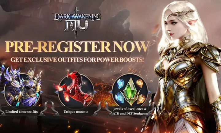 MU:黑暗觉醒带你踏入黑暗奇幻大陆,体验真正的大规模史诗战场。这里百人同屏激战,只有最强者才能存活。你可以集结盟友,跨服冲锋,夺下荣耀,书写属于自己的传奇。游戏支持自由转职,剑士、法师、射手可自由切换,多样技能随心组合,打造专属战斗风格。而且升级快速,高爆率公平掉宝,轻松升级,离线也能获取稀有神装。现在预约就能领取专属豪礼,预约人数突破150万后,还有加码福利,限定时装、炫酷坐骑、专属头像、荣耀称号等助你战力飙升。快来加入,开启属于你的暗黑冒险吧!