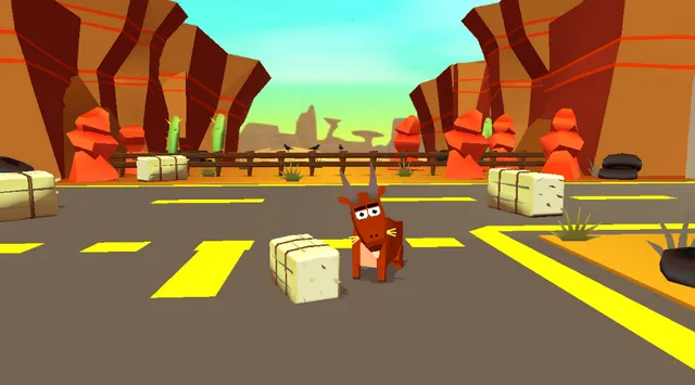 3. 有丰富多样的场景赛道设计,每个赛道都暗藏诸多危险挑战,玩家需灵活躲避仙人掌、岩石、溪流、往来车辆以及呼啸的火车等。