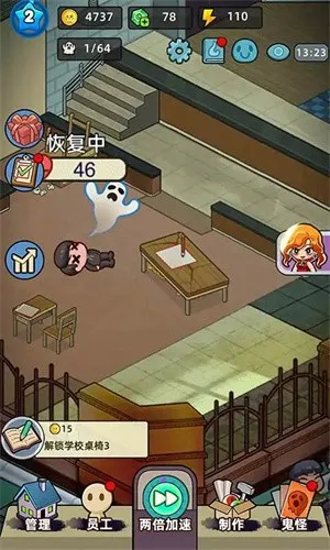 猛鬼打工日记破解版免广告,在荒废百年的长藤贵校旧址经营鬼屋。招募猛鬼员工吓唬顾客收集惊吓值,可自由设计鬼屋、招募猛鬼、研发道具,无广告干扰,畅享恐怖经营乐趣。