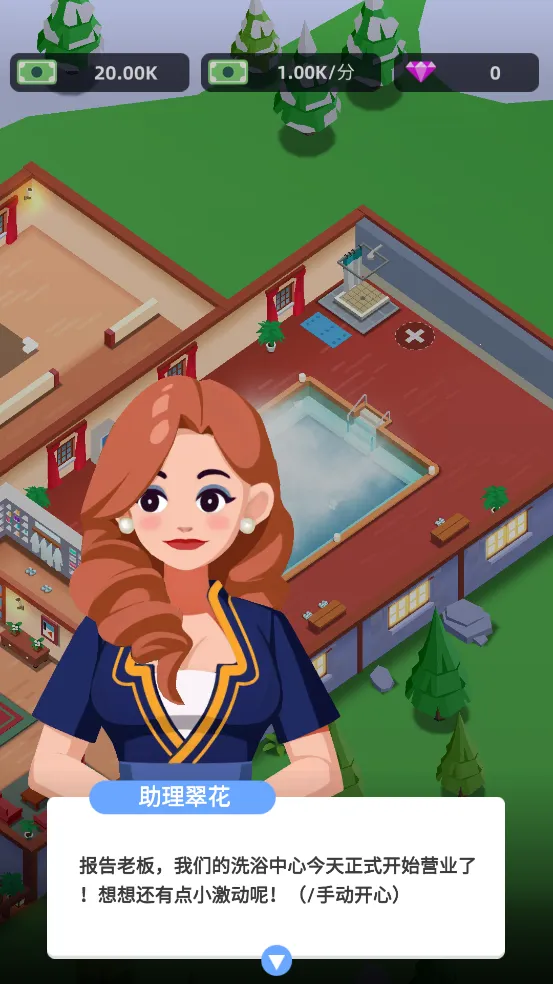 4. 操作简单,适合各类玩家,从小型洗浴中心起步,做出关键决策,逐步发展成世界最强。