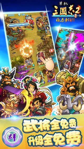 游戏中,玩家可畅享无尽策略乐趣。巨额元宝与资源轻松获取,能立即招募强力武将,组建无敌军团,体验热血三国战场。通过策略PK对战,灵活搭配完成重重关卡考验。能跨越挑战与强敌竞技,体验别样冒险。真实历史对决重现,在PVP模式中展现实力,享受战斗快感。还可自由选择武将进化升品,利用道具提升能力,从关卡获取掉落道具收集进化材料,借助装备系统深度设计提升实力,通过锻造升级打造传奇装备,更有合体技让战斗绚丽,皮肤升级提升合体技等级,最大化战斗效率。
