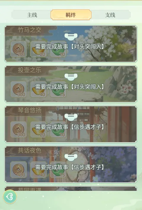 玩家通过选拔、升级宫女、解锁故事羁绊等可以解锁羁绊成就,领取丰富成就奖励。