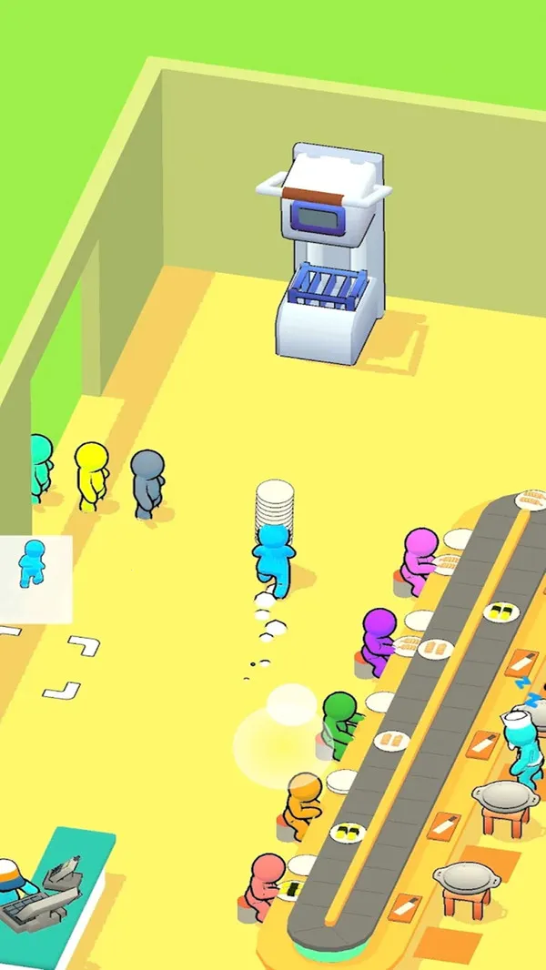 4. 游戏中寿司躺在跑道上不断运动,带来独特视觉体验,玩家要快速制作寿司,防止客人等待过久,乐趣无穷。