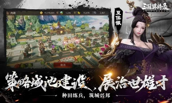建设城池运筹帷幄,养精蓄锐谋定天下征战黑暗三国战场,不只打打杀杀,所谓兵马未动粮草先行,三国诛将录新颖的城建玩法,支持玩家多渠道养成武将。玩家在成为城主后,可大施拳脚进行主城建设。招募升级武将,建造农田练兵场实现资源自给自足,战力提升快人一步!创意融入的策略建设玩法,让玩家运筹帷幄,谋而后动。届时还可发起城镇征伐战,讨伐各方诸侯,安定天下。