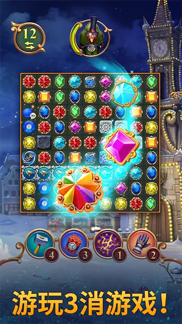 游戏以修复小镇阻止邪恶钟表匠阴谋为主线剧情。玩家通过三消获得宝石解谜,有海量有趣且具挑战性的关卡。支持和好友联机闯关,还会定期推进新活动并有限定奖励。进入游戏点击右下角任务图标可快速查看目标,收集关键物品能定位关卡。点击开始进入关卡挑战,在有限步数内通过消除合成收集所需物品。关卡胜利可获重要道具和解开谜题得辅助道具,完成任务能解锁丰厚道具与强力增益buff。