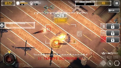 1、多种武器精准射击:操作手感流畅,打击感十足,带来沉浸式高科技空战体验。限定时间内完成任务可获更高评分,支持切换多种武器,应对各类目标游刃有余。内置自动锁定与瞄准辅助功能,大幅提升命中率,操作布局合理,便于快速反应,滑动屏幕可自由调整视角,全方位掌握战场局势。