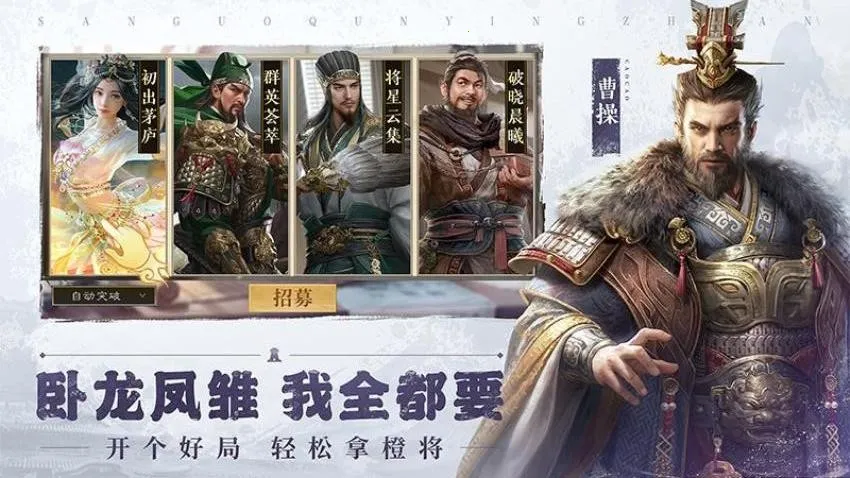 名将云集:开局就送三国历史名将,卧龙凤雏等任你所用,还能运用策略劝降不同阵营豪杰,众多三国将领助力统一天下。
