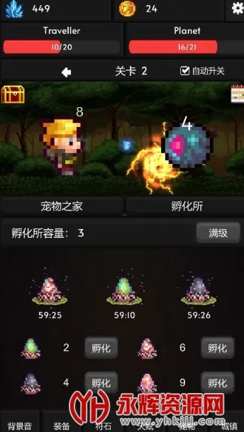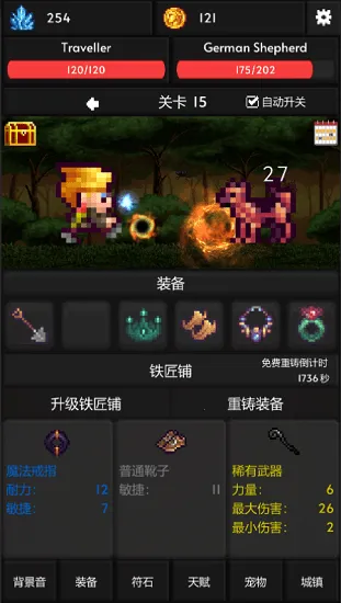 游戏玩法轻松有趣,玩家控制主角冒险探索完成任务。画面是复古像素风,还有广阔地图。有自动战斗系统,可放置奖励,一年365天自动战斗,轻肝可离线畅玩,存档在本地。能在不稳定传送门进行Roguelike探索,每次战斗胜利有奖励,活得越久拿得越多。还有无限策略和build,随机生成四种稀有度装备,超过四种专精属性和10种副属性,装备符石可触发超30种符石特效。能孵蛋获取宠物组建大军强化属性,有超过十种天赋可随时重置build自定义角色。