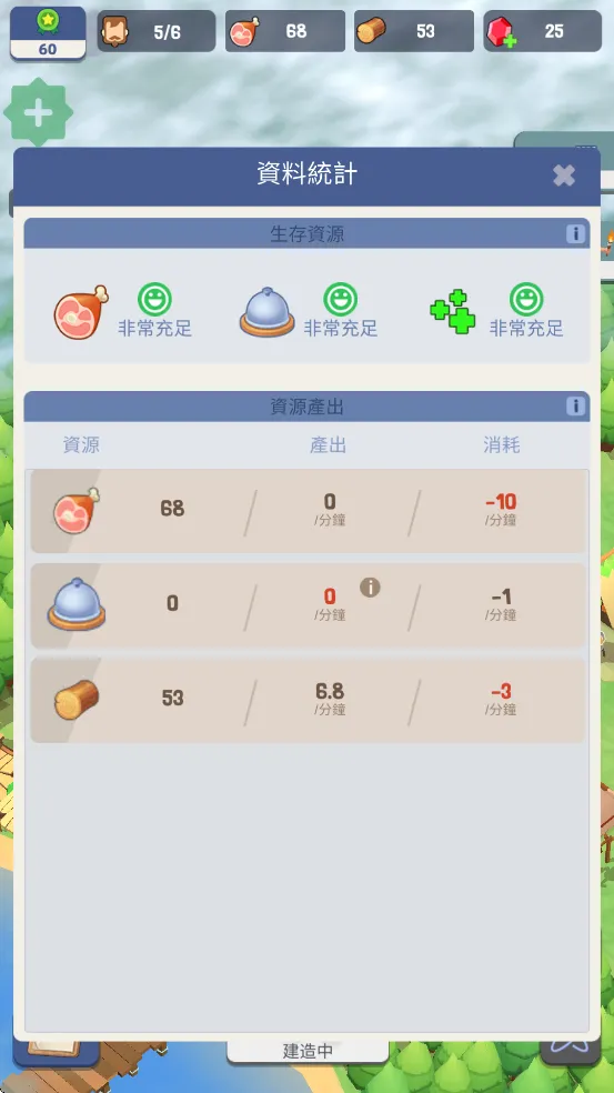 4.点击建造,可以建造许多不同功能的建筑包含食堂、伐木场、帐篷等随着等级越高可以建造的建筑更多