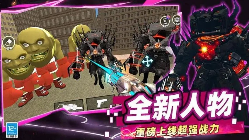 摄像人对决马桶人是动作对战游戏,玩家进入马桶人多元宇宙战场,自由选角色,融合多派系。可操控奇葩单位,体验团战与策略布局,自由搭配技能装备,还有搞怪装扮,带来沉浸式乱斗体验。