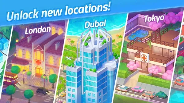 它玩法多样又有趣。能完成每日任务和挑战拿金钱奖励,帮助医生治疗病人,解锁升级多种医疗器械,提供优质服务。还有多种场景可选,能扩建医院到伦敦、东京等地。操作简单,画面清新,适合各年龄段玩家。