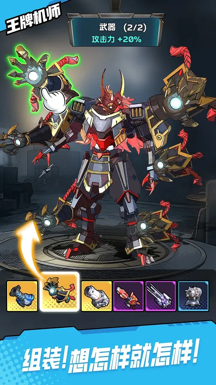 1. 可亲手组装独一无二的超级机甲,武器系统自由组合,外观造型随心定制,打造终极战争机器。