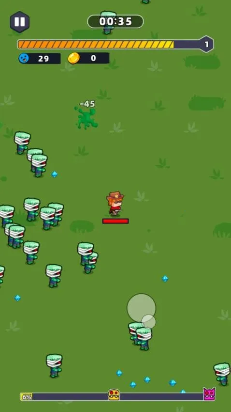在这款精彩刺激的射击闯关游戏中,有着诸多有趣玩法。玩家身处野外,拿起武器击杀野兽可获强化 buff 提升攻击力。能全方位观察战场环境,据此制定作战计划。有多个武器自由选择更换,合理挑选可降低作战难度。还有许多道具能在关键时刻提供极强加成。通过攻击开启散落宝箱,有机会获取丰富资源奖励。稳定培养提升角色战力,以充足战斗力消灭敌人。凭借无双割草机制完成最终挑战,轻松消灭所有强敌。