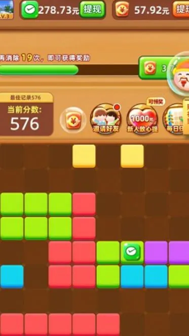 这款游戏玩法简单易上手,玩家拖动拼块匹配消除即可。拥有趣味消除闯关玩法,超多关卡随心选,完成任务能领红包赚零花。还有特殊道具和技能助你快速消除方块。可选择不同角色,每个角色有独特能力。解锁多样章节剧情,增加趣味性与代入感。关卡有多种难度和目标,还有丰富成就奖励系统激励玩家,华丽视听效果营造奇幻氛围,带来全新消除体验。
