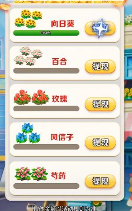 玩家可在游戏中体验种植乐趣,通过完成线上任务活动打造完美花园。需耐心经营花圃,解锁花卉完成种植任务。关卡中能领取大量奖励,完成订单获取收益,收集道具金币赚取红包大奖。游戏特色丰富,有多种鲜花品种待开发,带来新奇玩法。还有大量精彩挑战任务,不断解锁更多鲜花。亮点在于体验欢乐玩法,感受模拟经营快乐,收集植物开放花朵。优势是赚取丰厚收益,享受轻松种花,奖励丰富,能与伙伴一起经营,享受惬意时光。