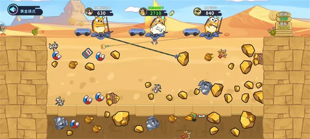 这里有丰富的游戏物品,像闪亮金子、可爱小猪等。还有酷炫助力道具,威力炸弹、幸运草啥的。玩法就是校准角度抛出抓钩抓金子。而且现在有全新多人竞技模式,能邀请好友或匹配网友实时对战,在同一矿洞较量,看谁能抢到最值钱的宝藏。公平竞技,用钩子干扰对手,策略与运气缺一不可。