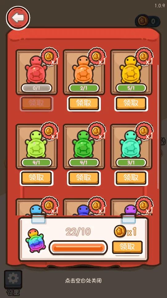 乌龟对对碰是一款超有趣的创新消除手游。它以可爱的乌龟为核心,玩法独特。玩家通过将相同颜色的乌龟对对碰来消除,就能获得奖励。这里有两种模式供你选择,比如九宫格模式等。操作很简单,点击屏幕就能让乌龟移动碰撞。游戏里还能选一种颜色作为幸运色,当消除到这个颜色的乌龟时会有特别奖励。它的消除方式新颖,不是传统按部就班的那种,以乌龟代替方块,带来别样趣味。而且还有多种关卡和挑战模式,满足不同玩家需求。另外,许愿机制很有意思,游戏前许愿想要的颜色,拆出该颜色乌龟就能获额外拆包机会。连击还有奖励,连续消除多个乌龟图案能得额外奖励或拆包机会。画面可爱,音乐轻松,玩起来既能享受乐趣,又能减压,特别适合在零碎时间玩,赶紧来体验吧!