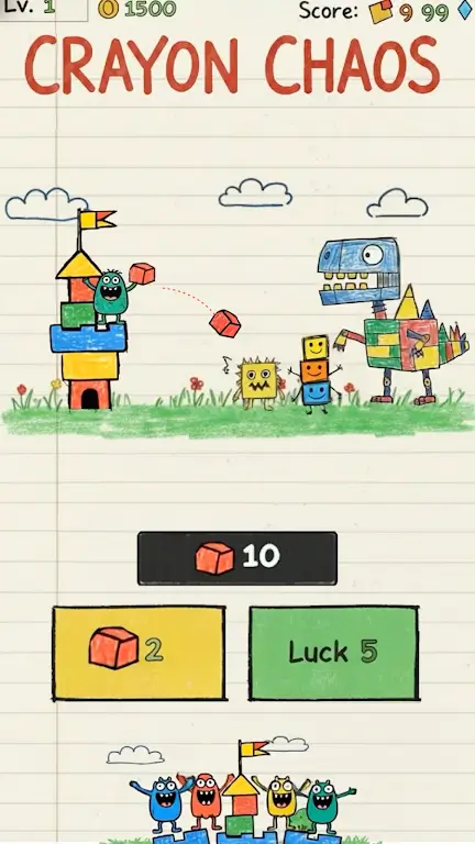 1. 蜡笔风格视觉盛宴:采用亮丽多彩的蜡笔手绘风格,置身色彩斑斓的涂鸦本,可爱画面与刺激战斗并存,彩色线条与景观让战斗更惊心动魄。