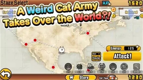 游戏的升级养成系统完善,猫咪兵种丰富,像巨人猫、恶心猫等。不同猫咪所需金币不同,玩家要积攒金币并摧毁敌方基地才能获胜。战斗系统编成简单,可组建猫咪队伍作战,还能发动猫咪抱攻击对方城堡。养成系统也不复杂,过关获经验,猫咪等级到10可转职。游戏画风简洁解压,操作极简却体验丰富,极易上手。想感受别样策略塔防体验,就来试试这款游戏吧。