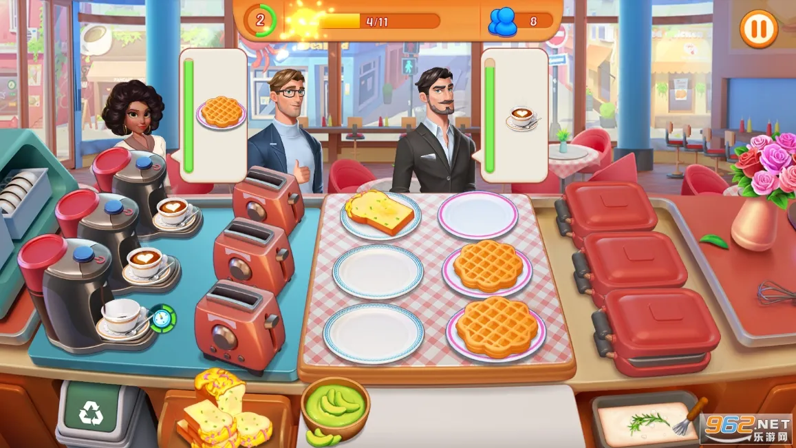 2. 能让玩家从零开始经营管理餐厅,随着菜谱解锁与装修升级,餐厅规模扩大,代入感和成就感不断增强。